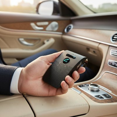 - Les haut-parleurs Bluetooth comme notre FreeSpeak™ se fixent simplement sur le pare-soleil ou le tableau de bord